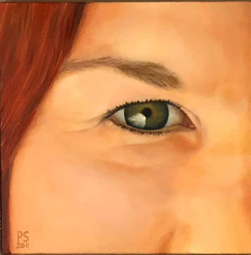 12” x 12” illuminated oil paint on canvas close-up of one area of a face is a Favorite Facial Feature Portrait. Brining attention to the beauty of a face, by choosing only one feature is a playful way to engage the viewer. By eliminating the other recognizable features, a whimsicalness is offered to figure out who’s face the feature belongs to.
